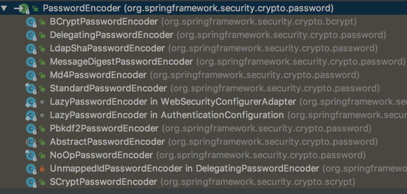 encoders.put("MD5", new org.springframework.security.crypto.password.MessageDigestPasswordEncoder("MD5"));