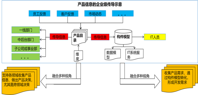 产品目录能够联通公司内外,联通业务和技术,将市场信息、客户信息、销售信息、伙伴信息等各种信息通过高维数据结构组织起来,让海量信息分门别类地流向信息需求方,成为一个高效的信息传输渠道,这才是企业级产品目录真正的价值。而当有信息无法沿着产品目录传递时,我们也可以发现是否缺少了与之对应的产品或者产品维度。如果能够按照产品目录汇集起海量、多维、完整的产品信息,就可以通过大数据和 AI 技术,进行更为广泛、深入的信息挖掘,产生超过单点分析的业务效果,包括产品之间的相关性、客户行为的相关性、内外部事件与产品的相关性等一系列综合分析,这是需要通过产品进行串联的分析工作。有效应用产品目录来组织信息,可以更加贴近业务对信息的理解;经过整理的产品分析信息也可以直接推送产品开发团队,完善项目效果反馈机制,提高设计人员了解市场信息的及时性。