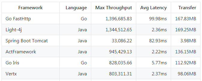 这里有一份 benchmark 的测试报告,它与 Spring Boot 及其他微服务平台作了一个比较: