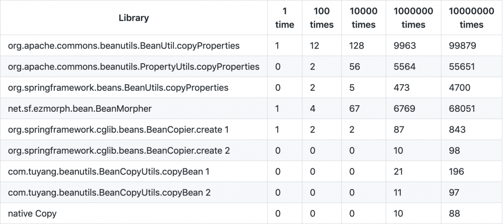 更多请见: https://github.com/yangtu222/BeanUtils#performance