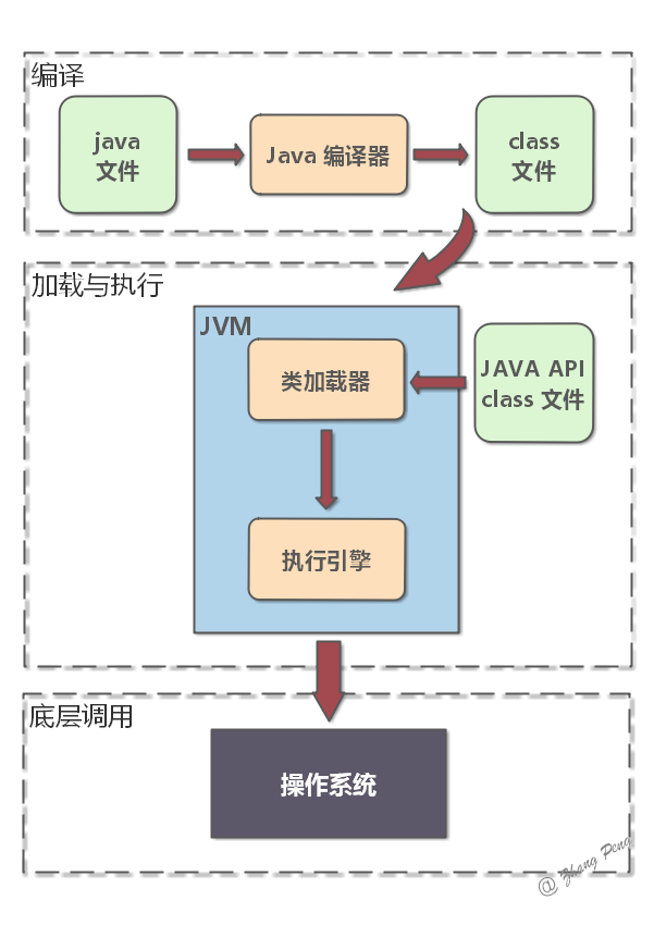 (1)在编译时,Java 编译器编译好 .java 文件之后,在磁盘中产生 .class 文件。 .class 文件是二进制文件,内容是只有 JVM 能够识别的机器码。