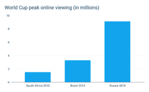 去年我们(以及我们客户)面临的最大挑战之一是扩大到FIFA世界杯的破纪录的观众。事实证明,2018年世界杯是有史以来规模最大的直播赛事,Akamai在峰值时的记录的速度为22 Tbps,超过了之前超级碗记录的两倍。Akamai测量的峰值量超过22 Tbps。这是他们在2014年看到的峰值的3倍。