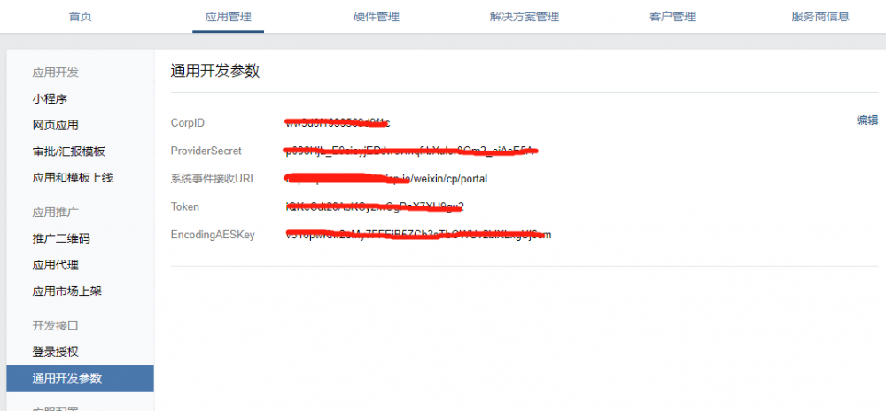 * 企业微信-用于接收跟应用无关的系统消息 corpId-是服务商的corpid