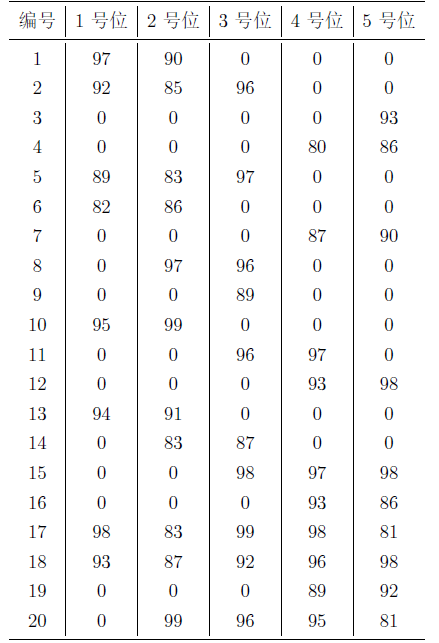 每位球员担任1 号位至5 号位时的评分如下表所示。请你计算首发阵容1