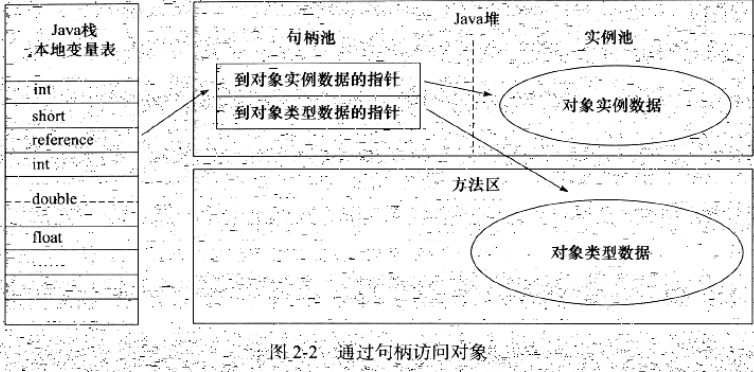 不同虚拟机实现的对象访问方式会有所不同,目前主流的访问方式有两种:使用句柄和直接指针。