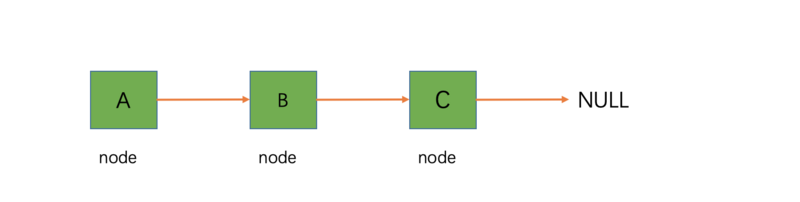 比如现在我们将元素A、B、C三个节点添加到链表中,示意图如下: