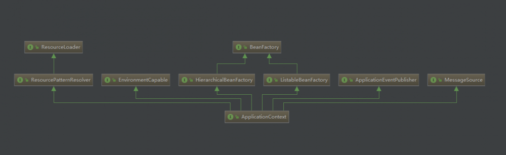 这里有两个重要的接口,一个是BeanFactory,顾名思义是bean的工厂、容器,bean创建好了就回放入这个容器里,我们要用的bean实例都是从bean工厂提供的。另一个接口是ResourceLoader,它的实现类实现了读取配置文件,将配置封装成bean实例,然后将bean放入bean工厂。