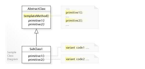 抽象类 AbstractClass 定义了算法框架 templateMethod() 方法,其中有2个方法 primitve1() 和 primitve2() 被抽象出来,子类 SubClass1 继承了抽象类 AbstractClass ,从而实现了 primitve1() 和 primitve2() 。