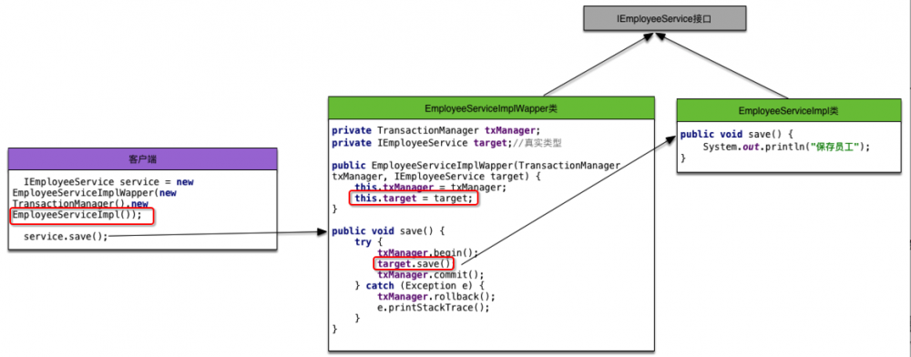 IEmployeeService service = new EmployeeServiceImplWapper(new TransactionManager(),
