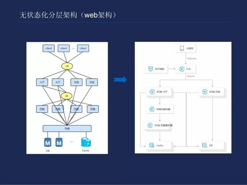 先看这么一个架构,我们不妨称之为无状态化的分层架构,简单说就是按照节点的关系和按照架构关系分别进行衔接,然后下面这个节点灵活进行伸缩。