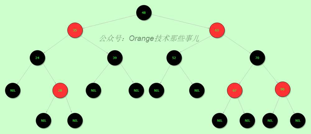 这里需要注意叶子节点的概念与一般意义上树的叶子节点不同,这里红黑树叶子节点都是黑色且为NIL的。