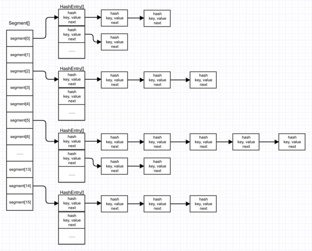 ConcurrentHashMap在JDK7和JDK8中的实现方式上有较大的不同。首先我们先来大概回顾一下ConcurrentHashMap在JDK7中的原理是怎样的。