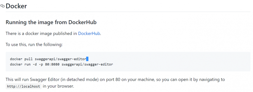 从官网上可以看到,我们可以自行搭建swagger-editor环境,由于swagger已经发布了docker镜像,因此我们只要使用docker运行镜像即可。
