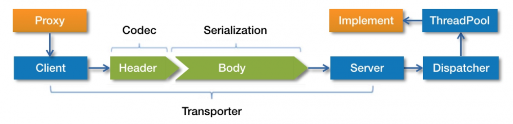 首先服务消费者通过代理对象 Proxy 发起远程调用,接着通过网络客户端 Client 将编码后的请求发送给服务提供方的网络层上,也就是 Server。Server 在收到请求后,首先要做的事情是对数据包进行解码。然后将解码后的请求发送至分发器 Dispatcher,再由分发器将请求派发到指定的线程池上,最后由线程池调用具体的服务。这就是一个远程调用请求的发送与接收过程。至于响应的发送与接收过程,这张图中没有表现出来。对于这两个过程,我们也会进行详细分析。