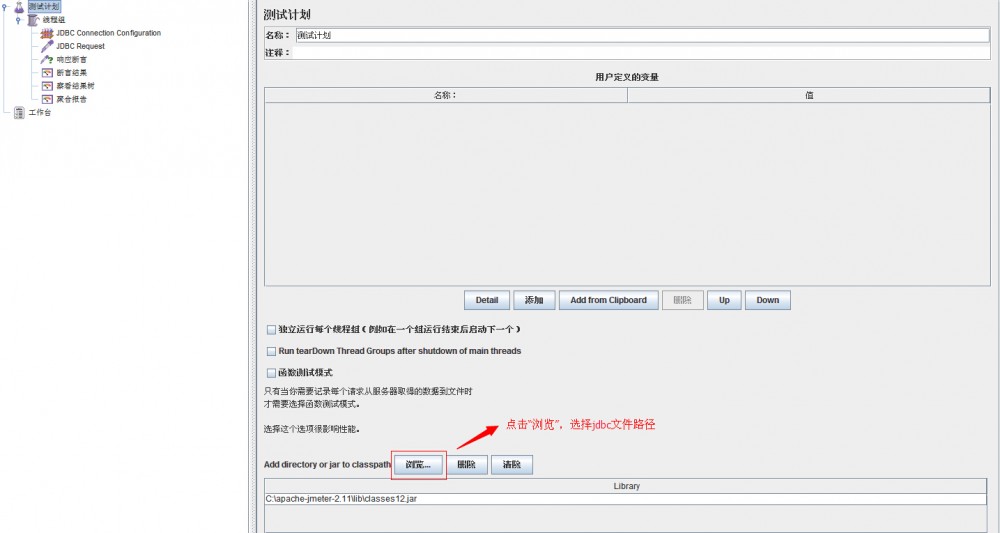 oracle安装目录下(oracle/product/10.2.0/db_1/jdbc/lib/classes12.jar)文件复制到JMeter/lib目录下