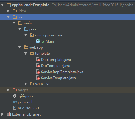 大家可以写适合自己的模板,这里为了演示,就直接拿 cppba-web 的模板来示范,至于 velocity 的语法大家可以查看这篇文章: