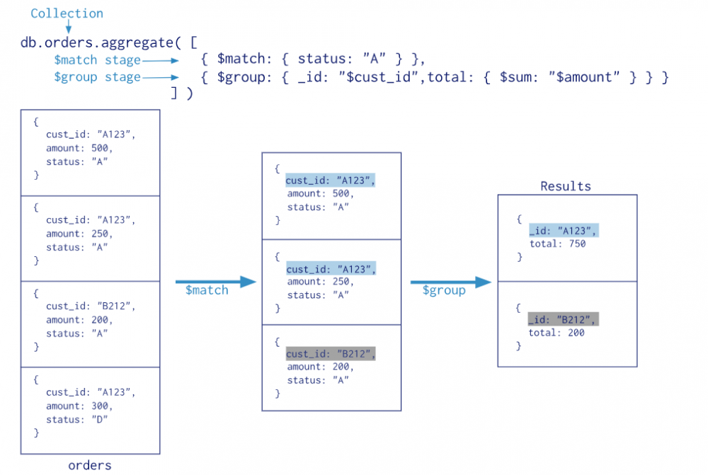 使用聚合框架,通过match,unwind,sort等不同的组件创建一个管道。