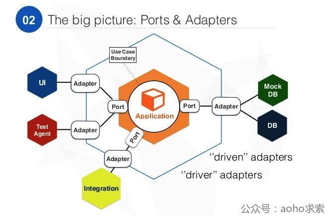我们知道,经典分层架构分为三层(展现层、应用层、数据访问层),而对于六边形架构,可以分成另外的三层: