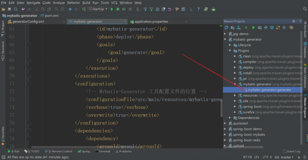 <!--执行generator插件生成文件的命令: call mvn mybatis-generator:generate -e -->