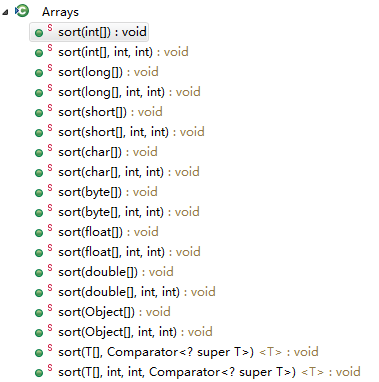 Arrays 提供两种排序: sort 和 parallelSort 。首先看下 sort 相关的函数: