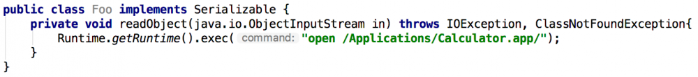 按理来说,只要我们从source出发,递归检查其所有方法调用,如果能够执行到sink,不就构成了一条调用链么?但问题远比这复杂的多。举个例子,下面这个类在反序列化时会执行Runtim.exec():