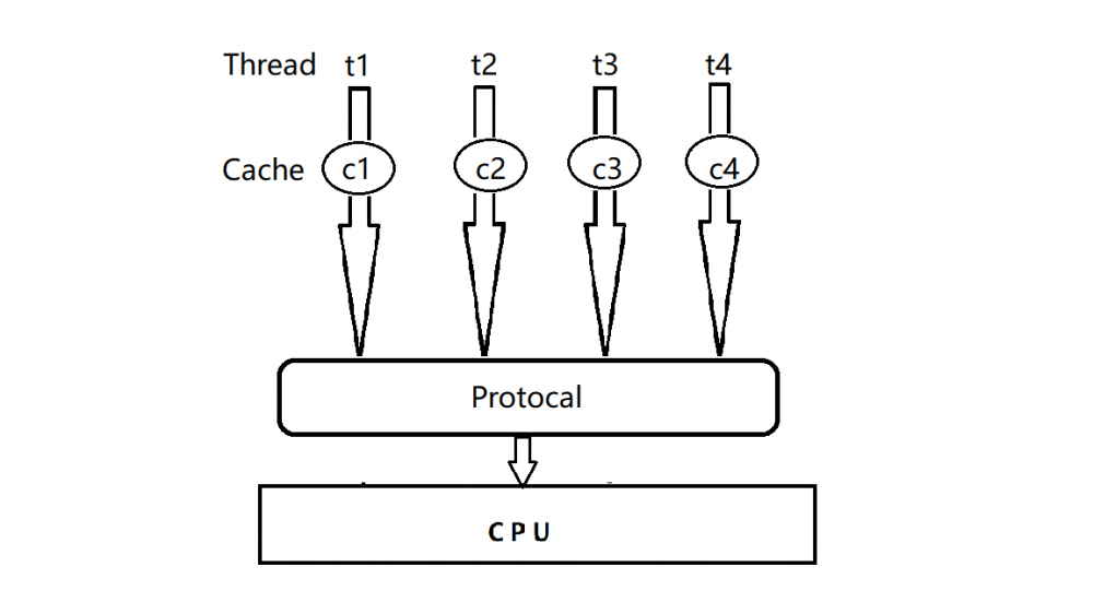 其中protocal协议是为了保证多个进程访问cpu主内存时,多个缓存与主内存数据一致性。