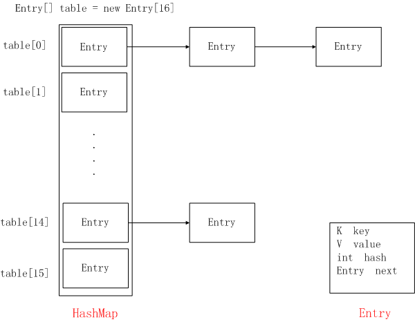 hash 值为0,即 table[0] 的 Entry。因为 key 值不能相同,所以 table[0] 只有一个值。
