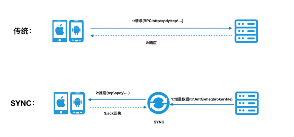 可靠同步:所谓可靠,是针对业务要求的 QoS(Quality of Service)等级为必达的业务场景而言,SYNC 保证只要用户在该数据有效期内活跃并且匹配业务推送要求的条件(客户端版本号、操作系统类型等多个维度),就一定会让客户端同步到业务推送的数据。