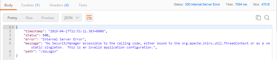 org.apache.shiro.UnavailableSecurityManagerException: No SecurityManager accessible to the calling code, either bound to the org.apache.shiro.util.ThreadContext or as a vm static singleton. This is an invalid application configuration.