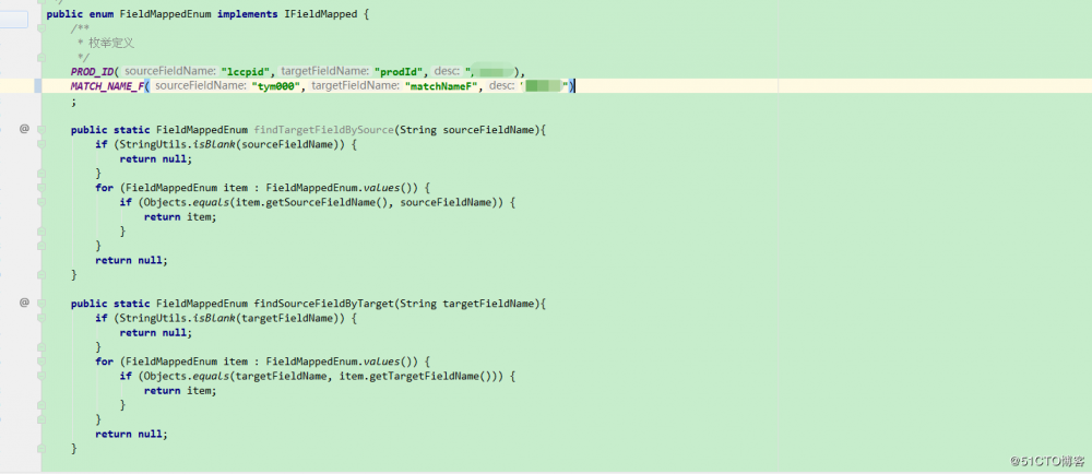FieldMappedEnum fieldMappedEnum = FieldMappedEnum.findSourceFieldByTarget(mapHis.get("name").toString());