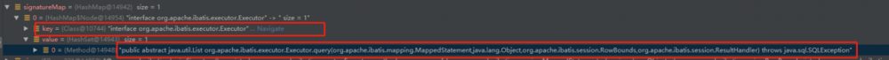 signatureMap.get(method.getDeclaringClass()) 想要获得返回值,method.getDeclaringClass() 的返回值必须是 MyBatis 四大接口中的任意一个的字节码对象,如下图: