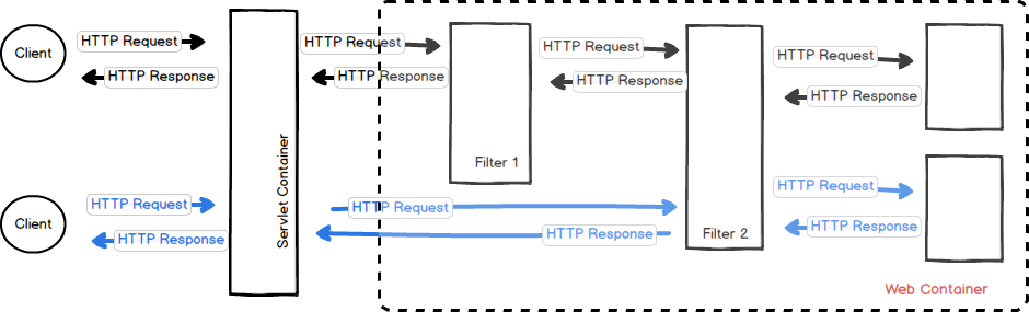 如上图所示,过滤器在Web容器中运行,因此其定义也将包含在web.xml文件中。