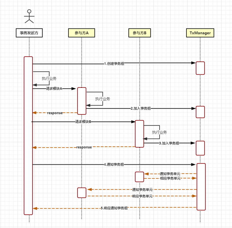 总的来说,核心步骤就是创建事务组,假如事务组,通知事务组