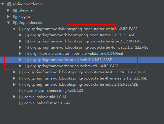 在Spring Boot之所以能使用,是因为在spring-boot-starter-web 这个starter pom中,已经引用了spring-web和spring-webmvc。