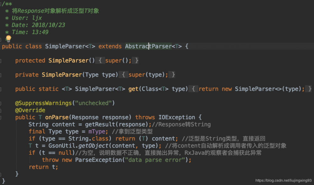 到这,我想你应该知道 SimpleParser 解析器的作用类,它就是将Http请求返回的结果直接解析成我们想要的任意对象。
