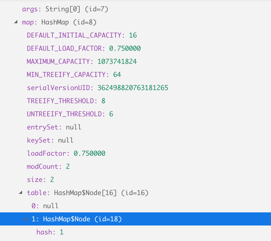 微软为VSCode开发了一个Java调试器 Debugger for Java 。之前用这个很不爽,还和微软的人吐槽过VSCode在debug java的时候,只能看到HashMap等java自带数据结构的物理视图,比如一个HashMap,在 0.17.0 版本下debug时,是这样的: