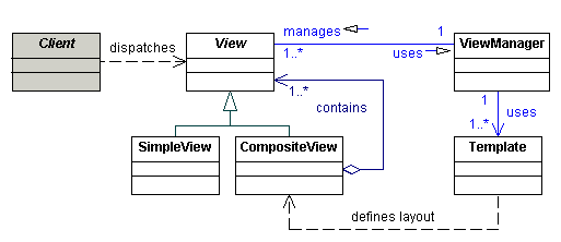 在此示例中,View管理是使用标准 JSP 标记实现的,例如 jsp:include 标记。使用标准标签来管理视图的布局和组合是一种易于实施的策略。