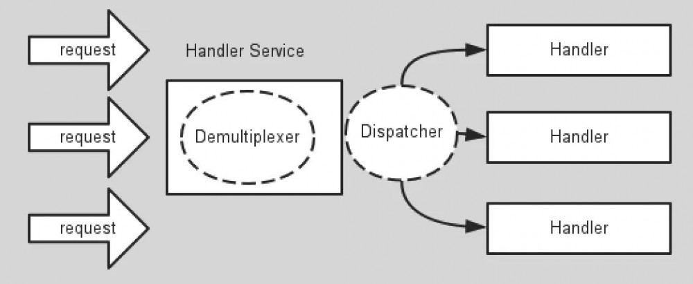 这个Service Handler会同步的将输入的请求多路复用的分发给相应的Request Handler。