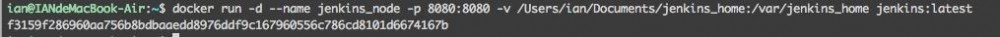 这句命令的意思是:在后台运行一个基于jenkins:latest镜像的容器, 容器的名字叫做 jenkins_node ,把容器的8080端口映射为49002端口,并且把服务器上的/var/jenkins_node目录挂在到docker容器上的/var/jenkins_home目录