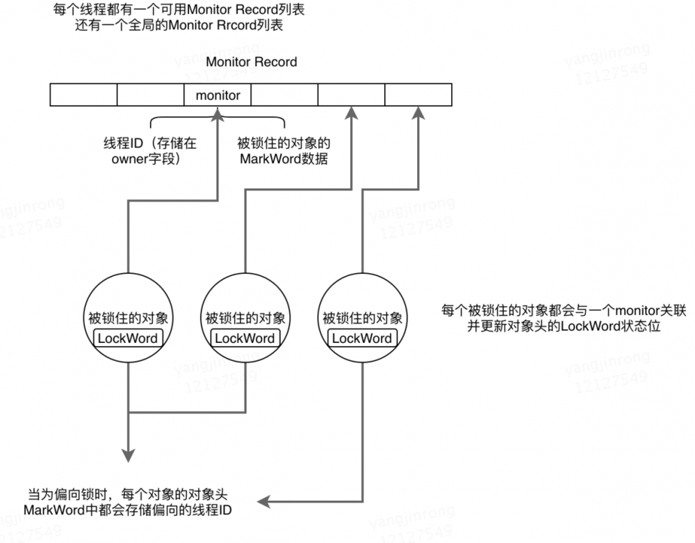 monitor可以理解为一个同步工具或一种同步机制,通常被描述为一个对象。每一个Java对象就有一把看不见的锁,称为内部锁或者Monitor锁。Monitor是线程私有的数据结构,每一个线程都有一个可用monitor record列表,同时还有一个全局的可用列表。每一个被锁住的对象都会和一个monitor关联,同时monitor中有一个Owner字段存放拥有该锁的线程的唯一标识,表示该锁被这个线程占用。