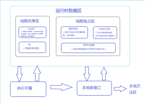 方法栈(JVM Stack) :线程私有,存储局部变量表、操作栈、动态链接、方法出口,对象指针。