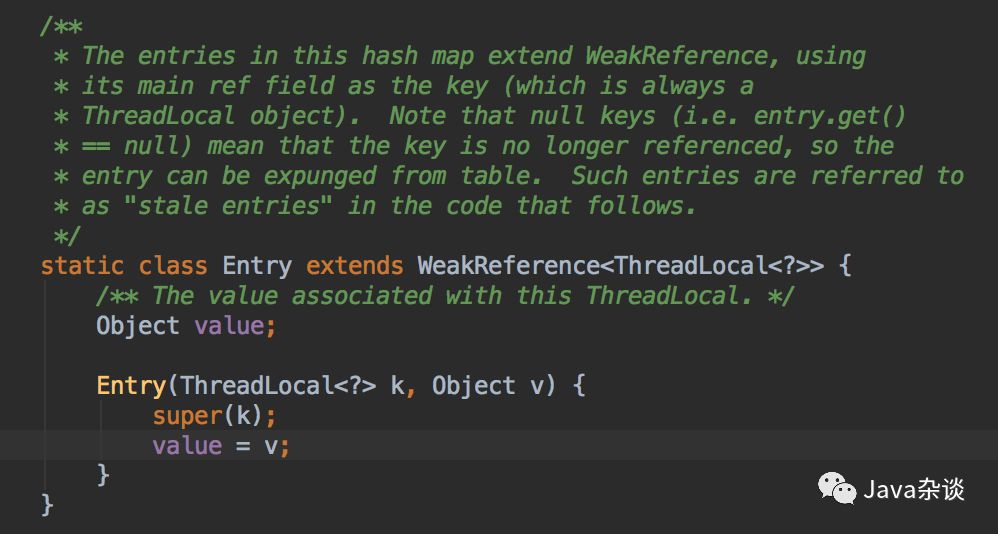 例子:JDK中ThreadLocal就是使用的W eakReference,就是为了防止用户忘记调用remove,发生内存泄漏。