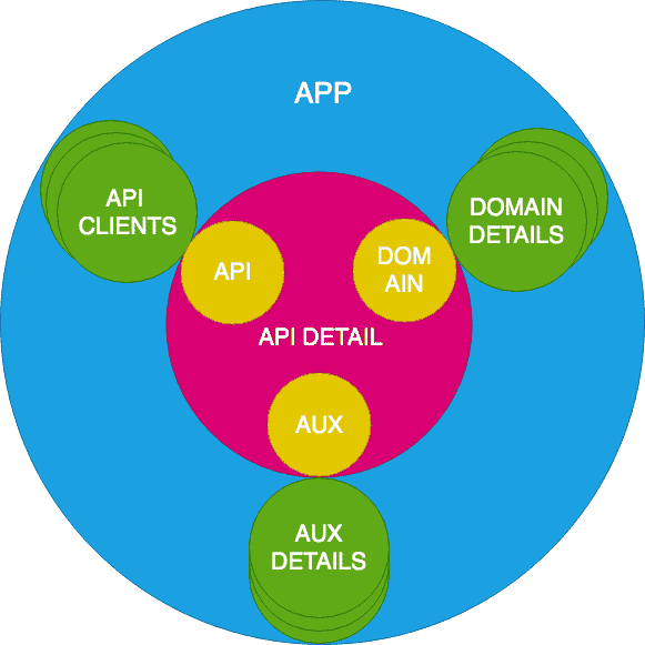 圆圈外的圆圈:外圆使用(客户端)或实现(细节)内部圆。