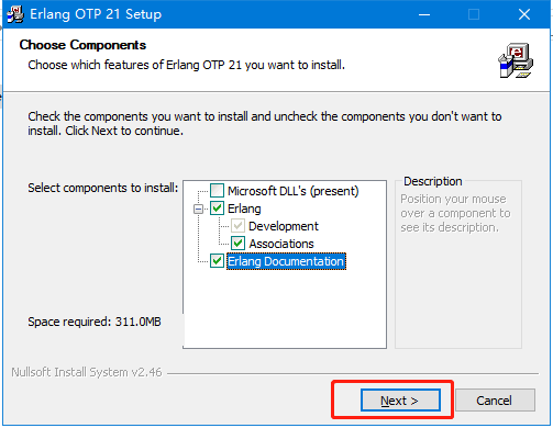 RabbitMQ 是基于 Erlang 语言写的,所以首先安装 Erlang,本例是在 Windows 上安装,也可以选择在 Linux 上安装,机器上没有虚拟机,直接在 Windows 上操作,建议在 Linux 上安装。官方下载 Erlang 软件,我下载最新版本 21.3。安装过程很简单,直接 Next 到底。 Linux 安装自行谷歌。如下图: