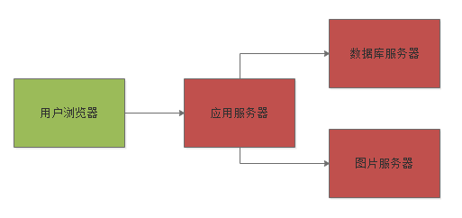 这个时候一般网站架构都是采用单体架构来设计的,总共就部署3台服务器,1台应用服务器,1台数据库服务器,1台图片服务器。
