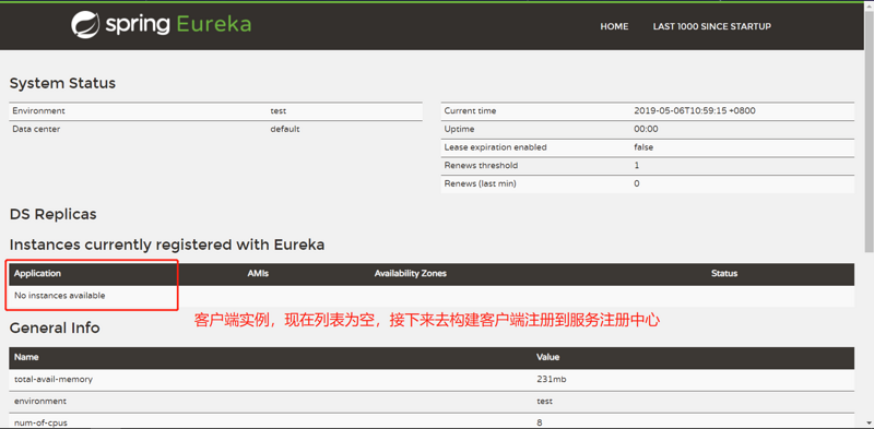 访问 http://localhost :111/eureka/,如果Server和Client都启动成功并且配置正确的情况将会如下情况。