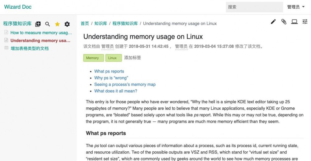 起初Wizard项目的想法比较简单,只是用来将 Markdown 文档和 Swagger 文档放在一起,提供一个简单的管理界面就足够了,但是随着在团队中展开使用后,发现在企业中作为一款文档管理工具来说,只提供简单的文档管理功能是不够的,比如说权限控制,文档修改历史,文档搜索,文档分类等功能需求不断的被提出来,因此也促成了 Wizard 项目的功能越来越完善。