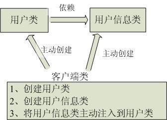 用图例说明一下,传统程序设计如图2-1,都是主动去创建相关对象然后再组合起来: