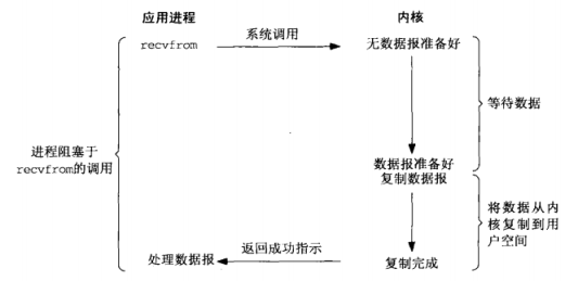 这是最传统的I/O模型,即在读写数据过程中会阻塞,我们通过图可以看到,在应用进程调用recvfrom,系统调用直到数据从内核从复制到用户空间,应用进程在这一段时间内一直是被阻塞的。 这种模型适合并发量较小的对时延不敏感的系统 。