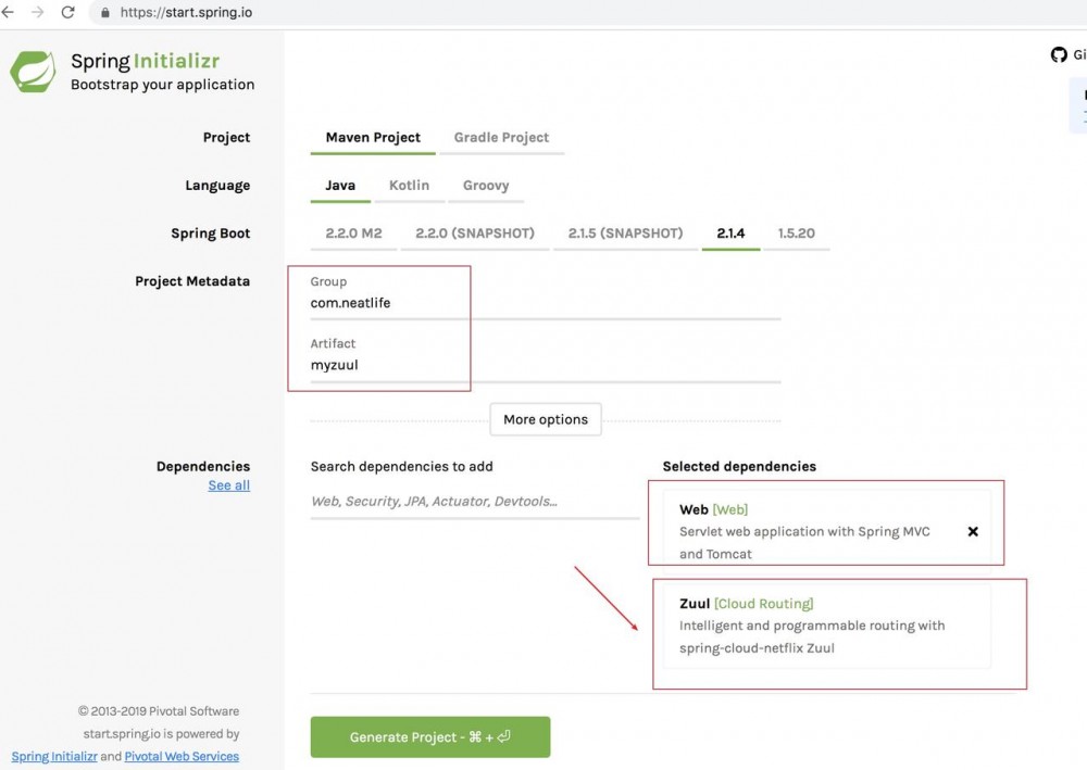 可以在https://start.spring.io/创建新的spring boot项目作为网关的骨架,比如